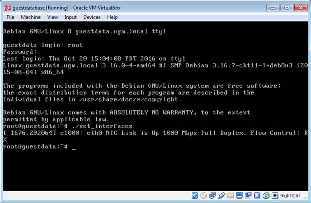 Type ./set_interfaces and hit enter.  This will run an automatic script that will activate your virtual machine’s connection to your network.  You will need to re run this script every time you restart the server.
