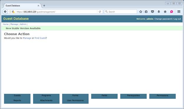You’ll either need to have your IT person create an internal certificate authority, or just add an exception to your browsers to allow this connection.  While we recommend the former practice, that process is beyond the scope of this instruction set and the latter will be sufficient for small networks.  Again, if the database is accessible from the internet, a security certificate from a recognized authority is strongly recommended.