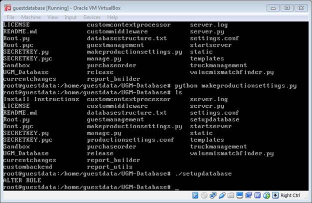 Now, run “./setupdatabase” and you’ll have a configured guest database server.