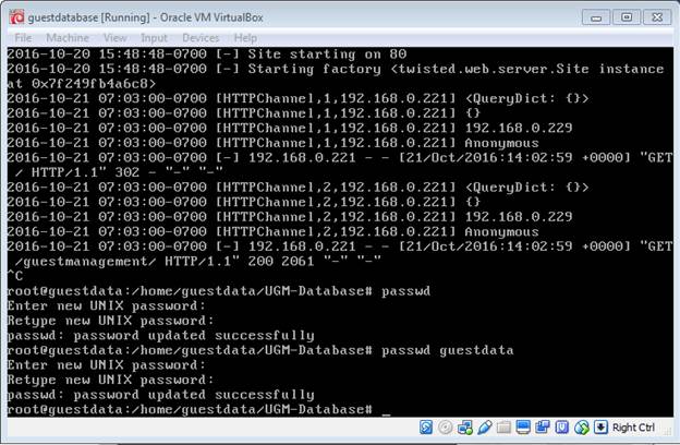 Before you actually start using the system, though, stop the server by hitting CTRL+c.  Then run “passwd” and change the root password.  Note, if you lose this password there is no way to recover it.  Next run “passwd guestdata” to change the guestdata password.