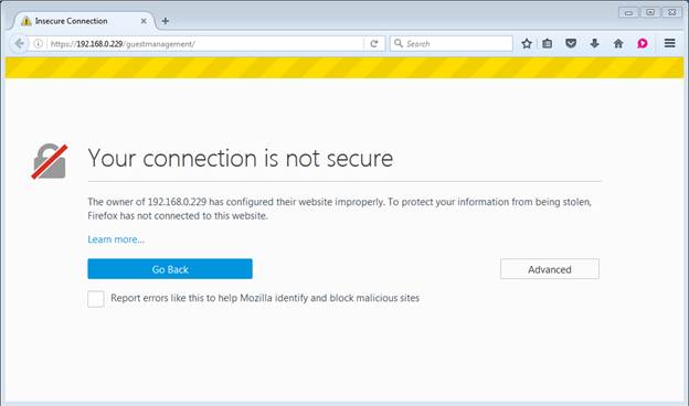 You’ll either need to have your IT person create an internal certificate authority, or just add an exception to your browsers to allow this connection.  While we recommend the former practice, that process is beyond the scope of this instruction set and the latter will be sufficient for small networks.  Again, if the database is accessible from the internet, a security certificate from a recognized authority is strongly recommended.